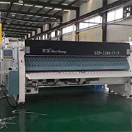 隧道式洗衣機配套設(shè)備之一,布草經(jīng)隧道式洗衣機預(yù)洗、主洗、漂洗出倉后自動進入壓榨機進行壓榨脫水。與傳統(tǒng)的壓榨設(shè)備相比,百強壓榨機采用 了先進的經(jīng)過特殊設(shè)計的棱式壓榨頭 ,可以在壓榨過程中有效逐步去除布草中殘存 的空氣,防止在壓榨過程中因壓力過大出現(xiàn)布草爆損,大限度地保護布草的完好。 壓榨好的布草經(jīng)穿梭運輸機進入烘干機進行打散烘干。